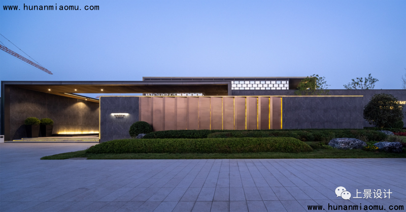 其实示范区前场这种视线开阔的场地空间也是能通过纯粹的“茶园式”修剪绿篱来表现,与景观墙形成肌理的互动(如下图)