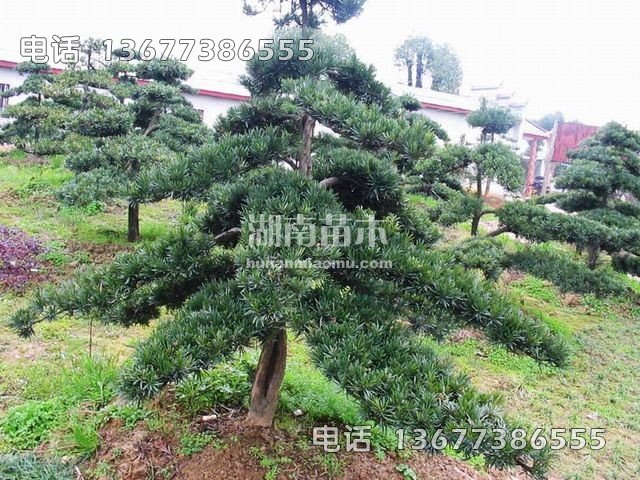 湖南苗木基地出售各种规格各种式样的造型罗汉松与罗汉松造型。