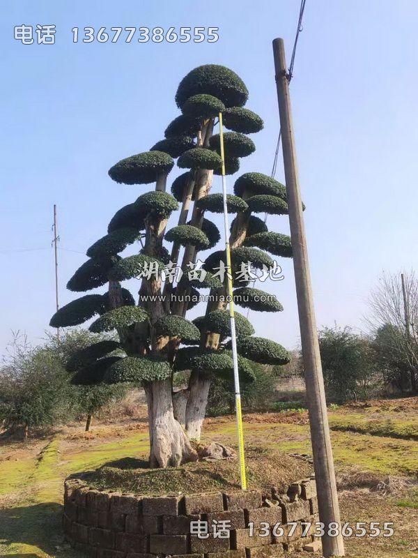 湖南苗木基地桩景基地大量供应1.5-2米,2-3米,4-5米小叶女贞桩、造型小叶女贞桩。小叶女贞桩景造型优美,大气。小叶女贞桩四季常青,移栽3年以上,根系发达,成活率100%,是公园绿化、小区绿化、广场绿化、市政绿化的好品种。选购电话:13677386555。